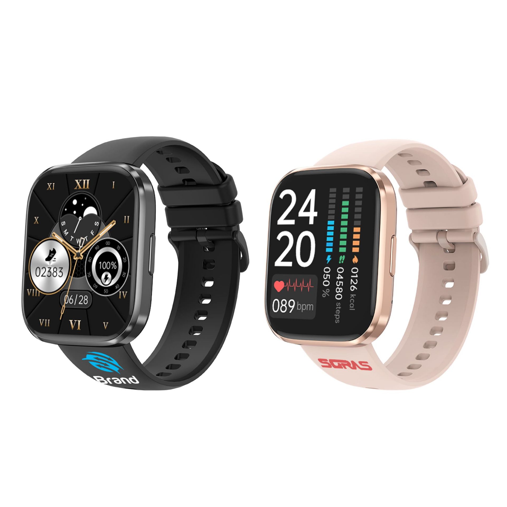 Use our 1.96" Square Smart Watch to track your exercise and health in real time. The watch is equipped with a 1.96 Inch HD TFT big screen, screen resolution: 240*282. The watch material is mainly composed of plastic and silicone strap. The watch functions mainly include BT call, 100+ Multi-Sport Modes, Sport real time HR, very low/high Heartrate Alert, Red light SpO2, 100+ / DIY watch face, Voice assistant and so on. You can download the Gloryfit app from the Apple store or Google store, connect via Bluetooth and sync the data to your iPhone or Android smartphone for easy management. We will use screen print, UV print and engraving to customize your brand logo.
