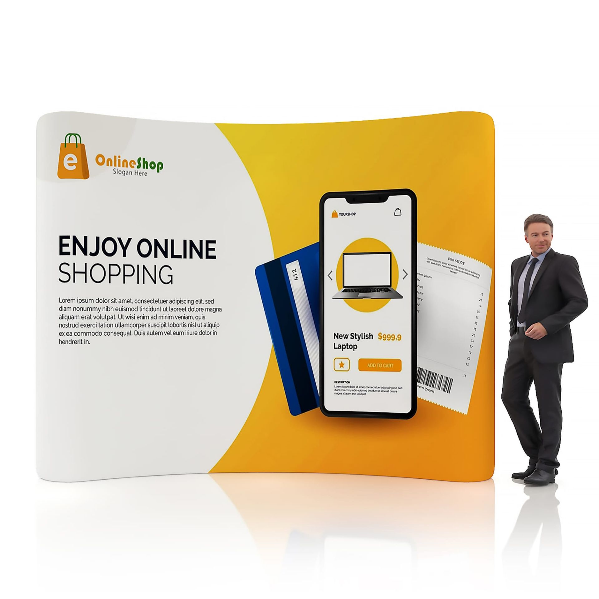 Get your branding seen at your next event, with our new display wall. The lightweight and strong aluminum frames are powerfully-built to sustain the fabric's stretch over long periods of time. The aluminum tube has a snap-lock function that can be easily assembled without tools. Made of Eco-friendly materials and reusable structure. Supporting customization via full surface sublimation printing. Can also be printed on both sides. Use our printed fabric wall banner as a background for stages, events, photobooths, press conferences, award ceremonies and more. Product accessories: Aluminum Frame*1set、Carry bag*1pc