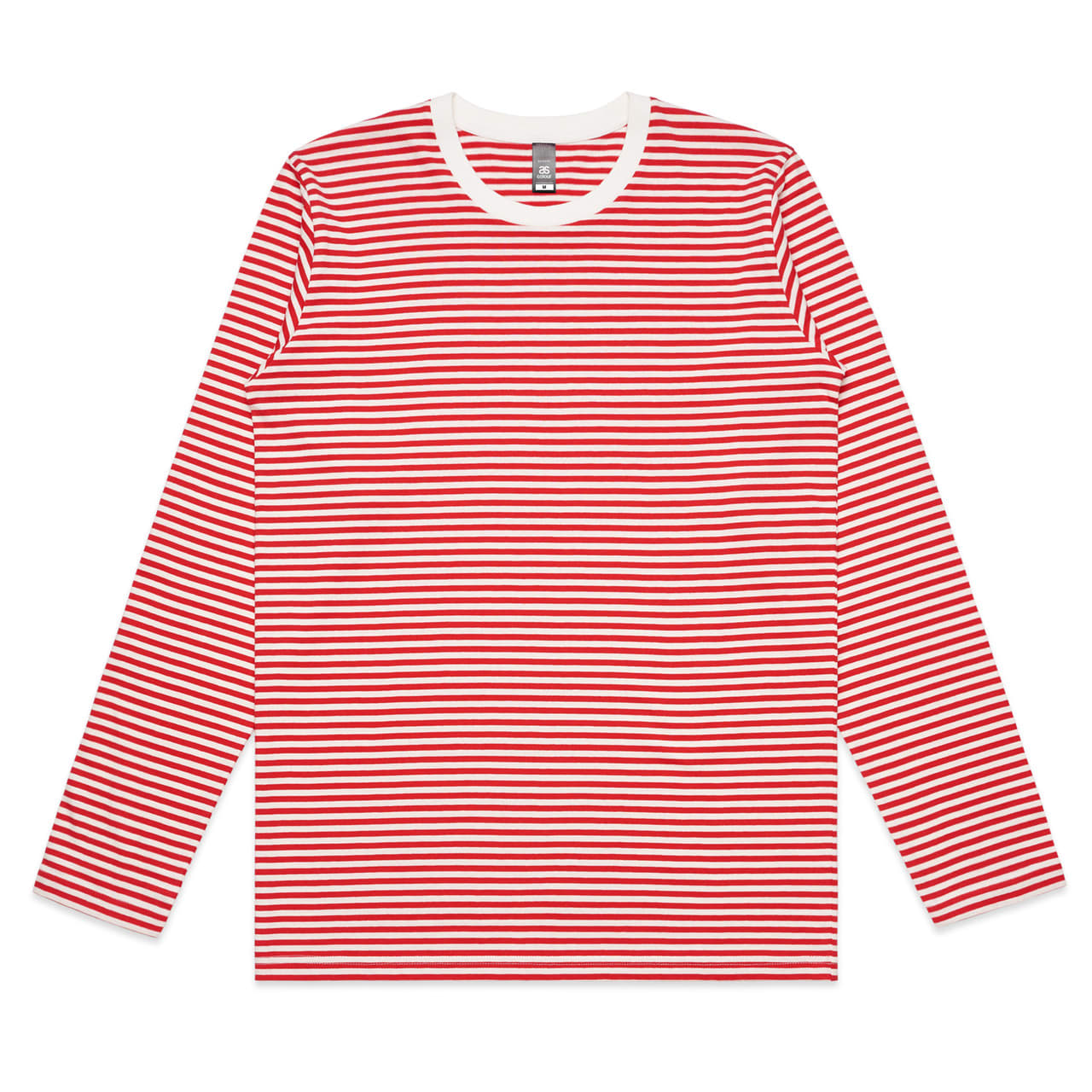 5mm stripe, neck ribbing, side seamed, shoulder to shoulder tape, double needle hems, preshrunk to minimise shrinkage