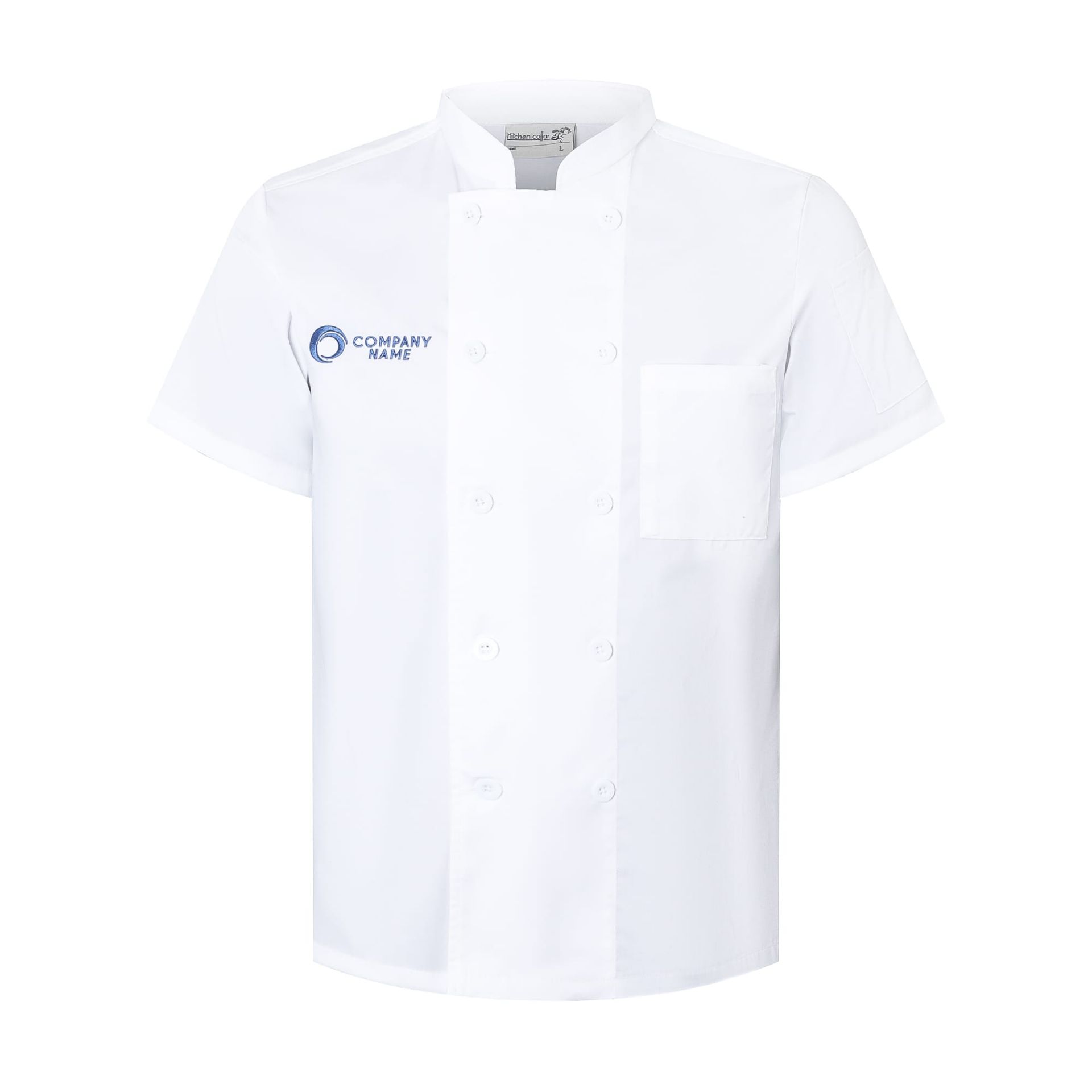 This short sleeves double-breasted chef jacket is the classic workwear for restaurants, hotels, and the food industry. Our Choice Chef Jackets are the go-to workwear with all the must-haves like left chest pocket for your most precious tools, pen pocket on left sleeve, sturdy matching buttons, and a double-breasted placket that has you covered from messy spills and stubborn stains. Made of poly cotton twill in 65% polyester for durability and 35% cotton for comfort. Mandarin collar stand with topstitching. We offer different methods to put your brand logo, company name, and slogan by embroidery, full-color heat transfer or customized patch. Do not hesitate to build up your hospitality workwear collection this season!
