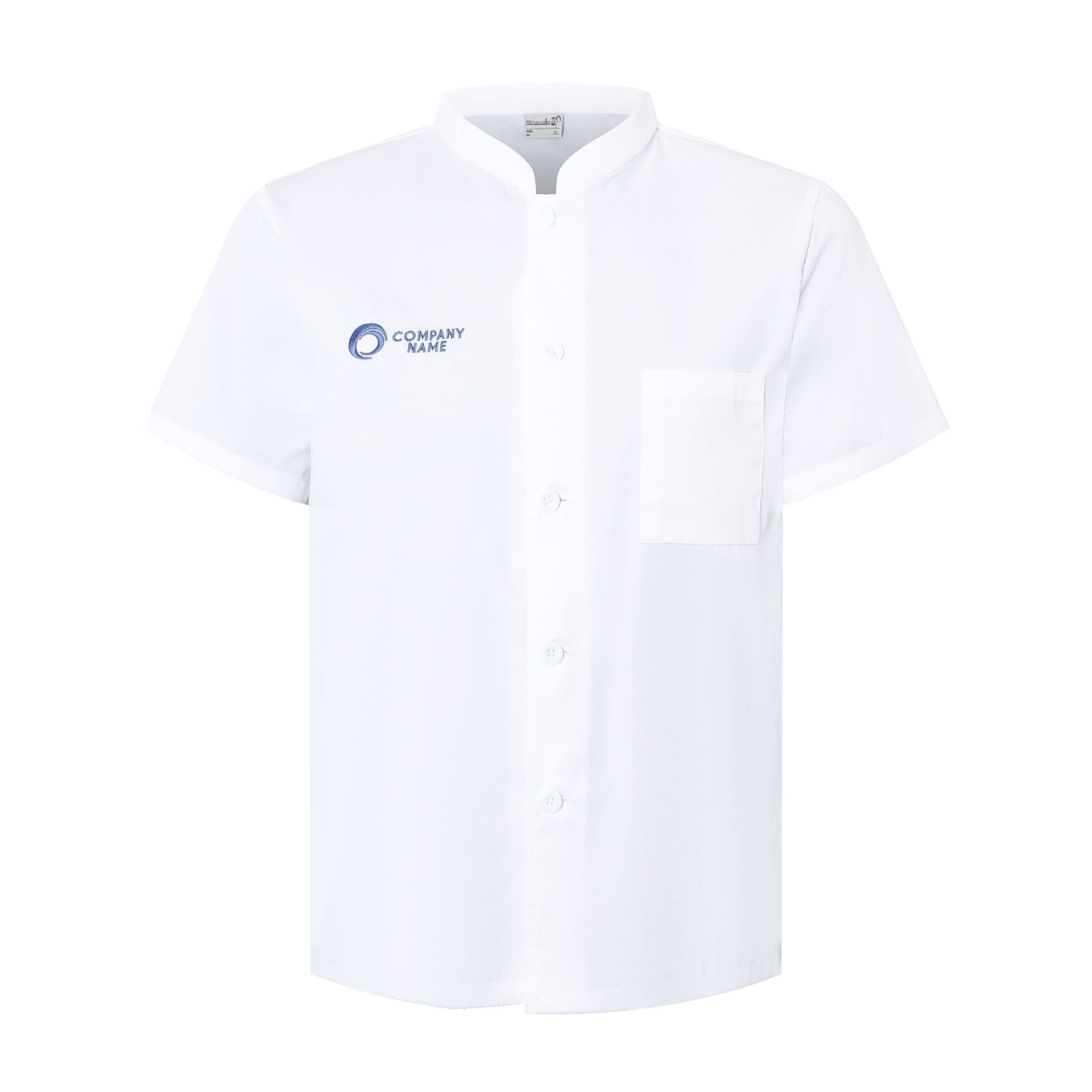 This short sleeves Single-breasted chef jacket is the classic workwear for restaurants, hotels, and the food industry. Our Choice Chef Jackets are the go-to workwear with all the must-haves like left chest pocket for your most precious tools, sturdy matching buttons, and a single-breasted placket that has you covered from messy spills and stubborn stains. Made of poly cotton twill in 65% polyester for durability and 35% cotton for comfort.Mesh on back yoke for airflow. Mandarin collar stand with topstitching. We offer different methods to put your brand logo, company name, and slogan by embroidery, full-color heat transfer or customized patch. Do not hesitate to build up your hospitality workwear collection this season!
