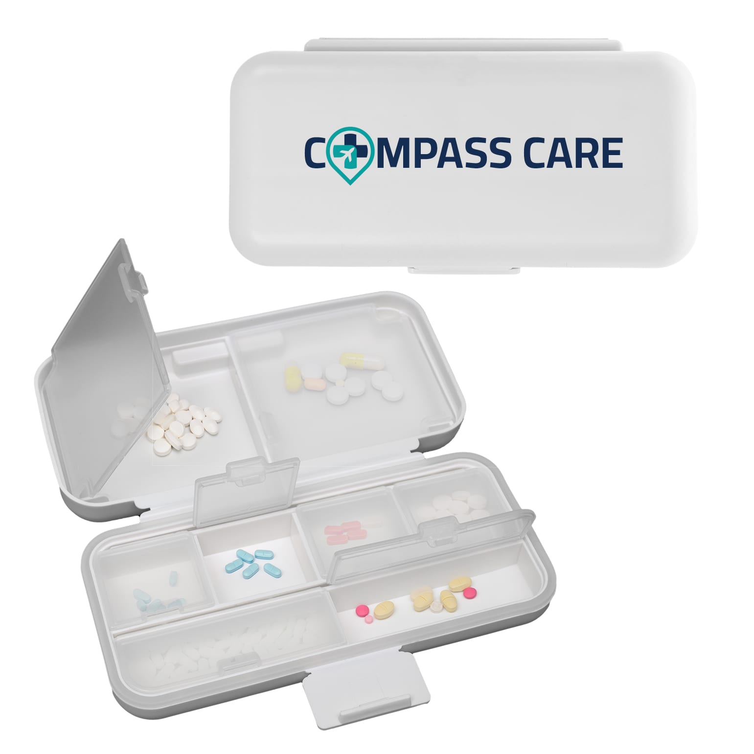 The Compact Pill Organiser is a versatile solution for all your storage needs. Featuring eight individual compartments in three different sizes, this organiser is perfect for pills, supplements, or small items like vitamins and craft supplies. Each compartment has a push-to-close lid for secure storage and easy access. The solid white case and frosted compartments offer a sleek, modern look while keeping everything visible.