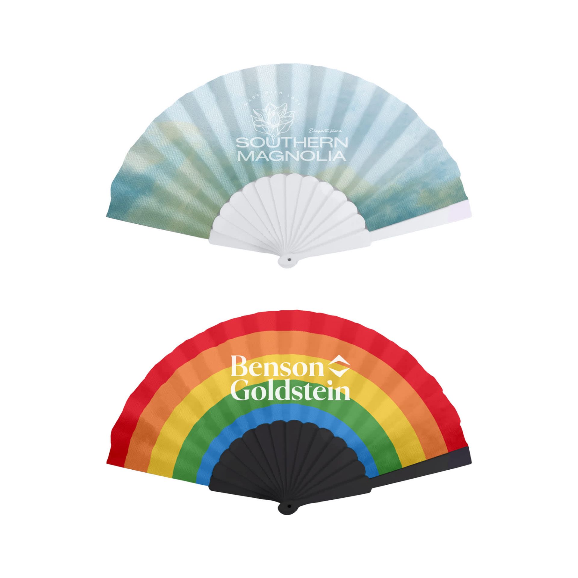 Offer cooling comfort with our Fabric Hand Held Fan. Crafted from polyester fabric and sturdy plastic, our fan comes with white or black handle options to match your brand style. Personalise the fan through CMYK to showcase your logos or patterns for clear results. Perfect for promotions, tourist gifts, or summer events, our fan provides a practical way to promote your brand.