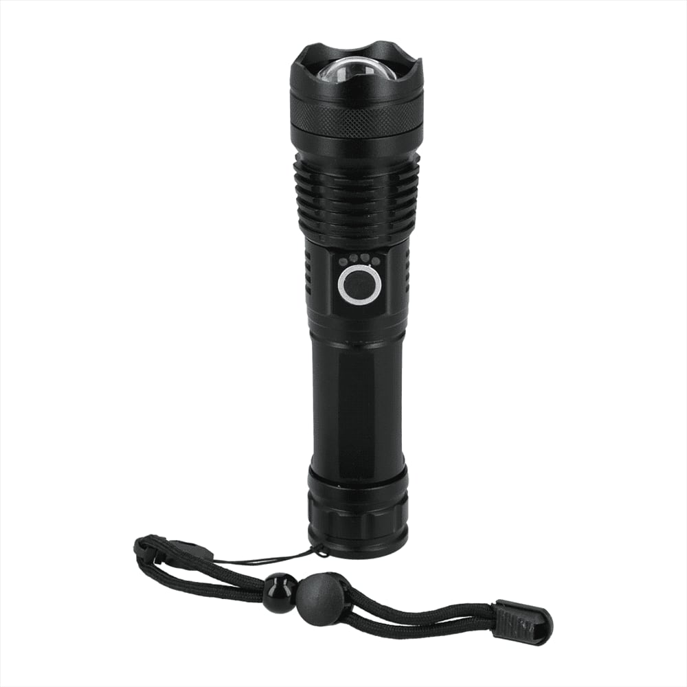 Discover the High Sierra® 200 Lumen Recycled Rechargeable Flashlight—a powerful and eco-friendly lighting solution designed to enhance your adventures while minimising environmental impact. With a telescopic zoom and 5 versatile lighting modes including high, medium, low, fast flashing, and slow flashing, this flashlight adapts to your needs. Say goodbye to disposable batteries as it features a user-friendly micro-USB input port and arrives with a 200mm charging cable for convenient recharging. Crafted from recycled aluminium, it's not only durable but also embodies sustainability. Packaged thoughtfully in a natural gift box and accompanied by clear instructions, this flashlight is poised to illuminate your journeys with both power and eco-consciousness
