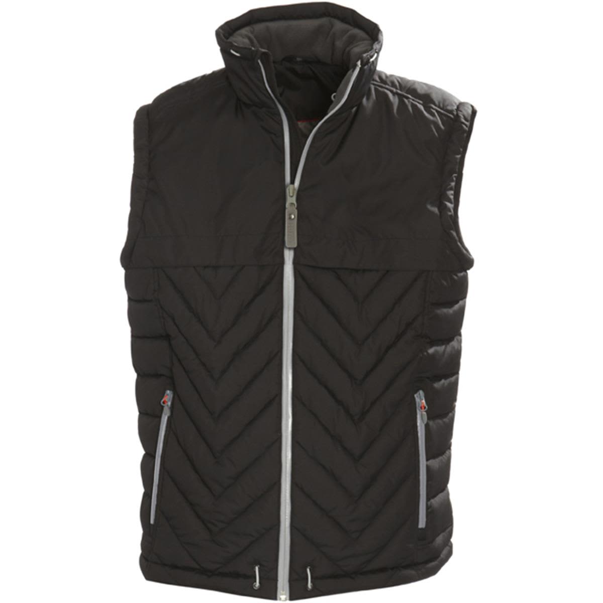 Water repellent unisex padded vest with water proof zippers, elastic drawstring at bottom hem and top of collar. Fleece in pockets and inside collar. Two zipped inner pockets, one with cord opening. The yoke can be opened for ease of decoration. Specifications * Fleece in pockets and inside collar. * Two zipped inner pockets, one with cord opening. * The yoke can be opened for ease of decoration. * Shell 100% polyester, Lining/padding 100% polyester.