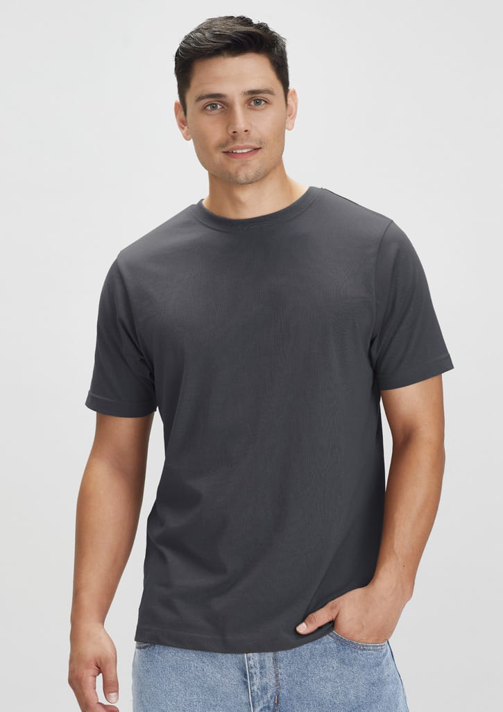 Features: Twin needle sleeve and body hem Ribbed elastane neck opening for stretch and shape recovery Easy tear-away label to facilitate promotional re-branding Side seams for reduced twisting and ease of alignment for printing Mobilon tape across shoulders for comfort and shape retention Fabric: 100% Premium Combed Cotton Fluoro Orange and Yellow-Lime: 65% Polyester, 35% Cotton Grey Marle: 85% Cotton, 15% Viscose 185 GSM Sizes: S - 3XL, 5XL