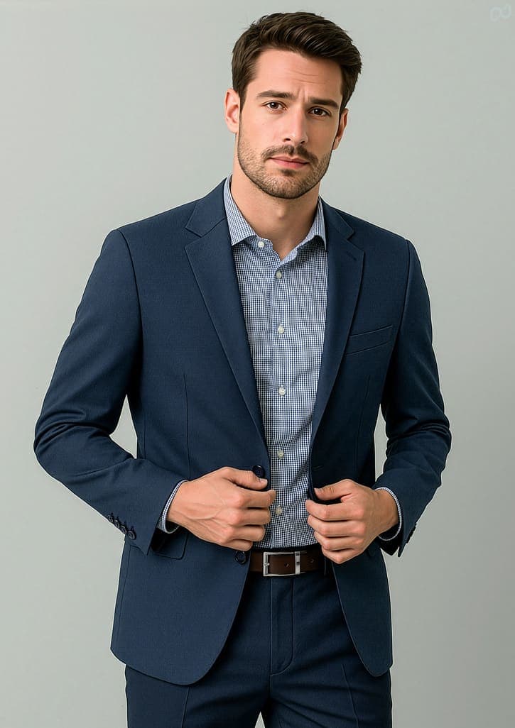 Features: City fit - designed to provide some shape 2 Button opening 2 Front jet pockets with flaps Center back vent Fully lined with internal pockets and an action pleat inside to allow for movement Contrast lining inside sleeve Internal zip for embroidery Cuff buttons are not functional Fabric: Renew Suiting: 77% Recycled Polyester, 20% Viscose, 3% Elastane; A lightweight fabric that's engineered to be an easy-care, machine wash-and-wear fabric with minimal creasing. Made for ease and versatility for when you are on the go. A conscious product choice, with 77% made from post-consumer recycled polyester. Sizes: 87R - 142R