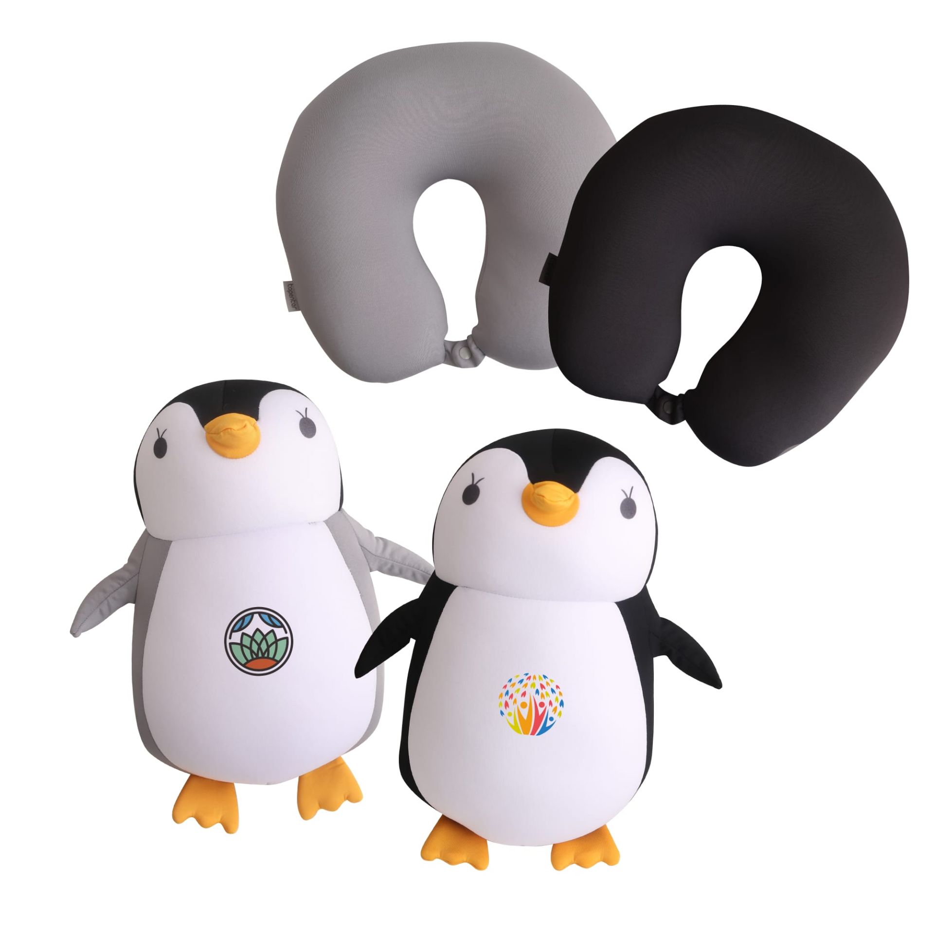 These Penguin Shaped 2 In 1 Travel Pillows are a great promotional gift that is sure to be used. Each of these penguin plush toys is well made, featuring foam beads and polyester material. With heat transfer full colour to highlight your design. Customized patterns on penguin bellies can enhance the effect of brand promotions. The penguin can be customized with digital print. You can convert it to plush toy or neck pillow. To convert from the pillow, simply undo the zipper on the back, and pull out the penguin toy. Our penguin shape convertible pillow is suitable for use in the office, at home, or on the go, which is providing comfortable and soft support.