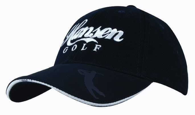 Upgrade your headwear with this brushed heavy cotton cap, featuring a stylish embossed PU peak for a premium look. The structured six-panel, low-profile design ensures a comfortable fit, while the pre-curved peak adds a touch of sophistication. Finished with an embossed golfer fabric strap, embossed buckle, and metal slit, this cap offers a perfect blend of durability and refined detail.