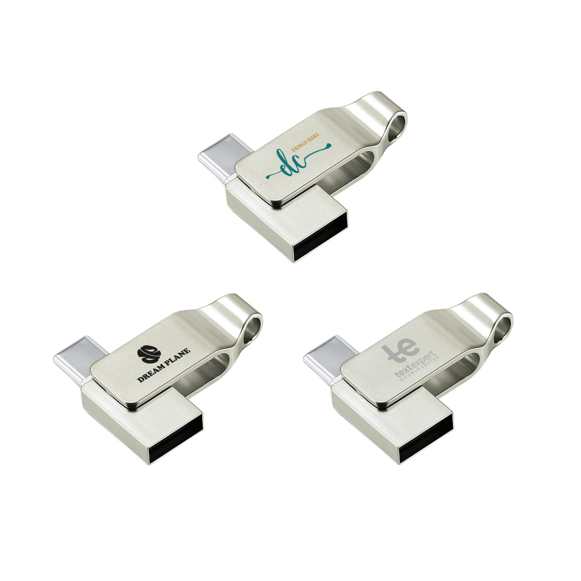 Elevate data storage with the Pivot Duo Type-c Flash Drive! Metal-built for durability and style. Complete with UV Print, Engraving and Screen Print to showcase your design. Ideal for professionals, students, and business users. Sleek, versatile, and ready for any task—get yours today!