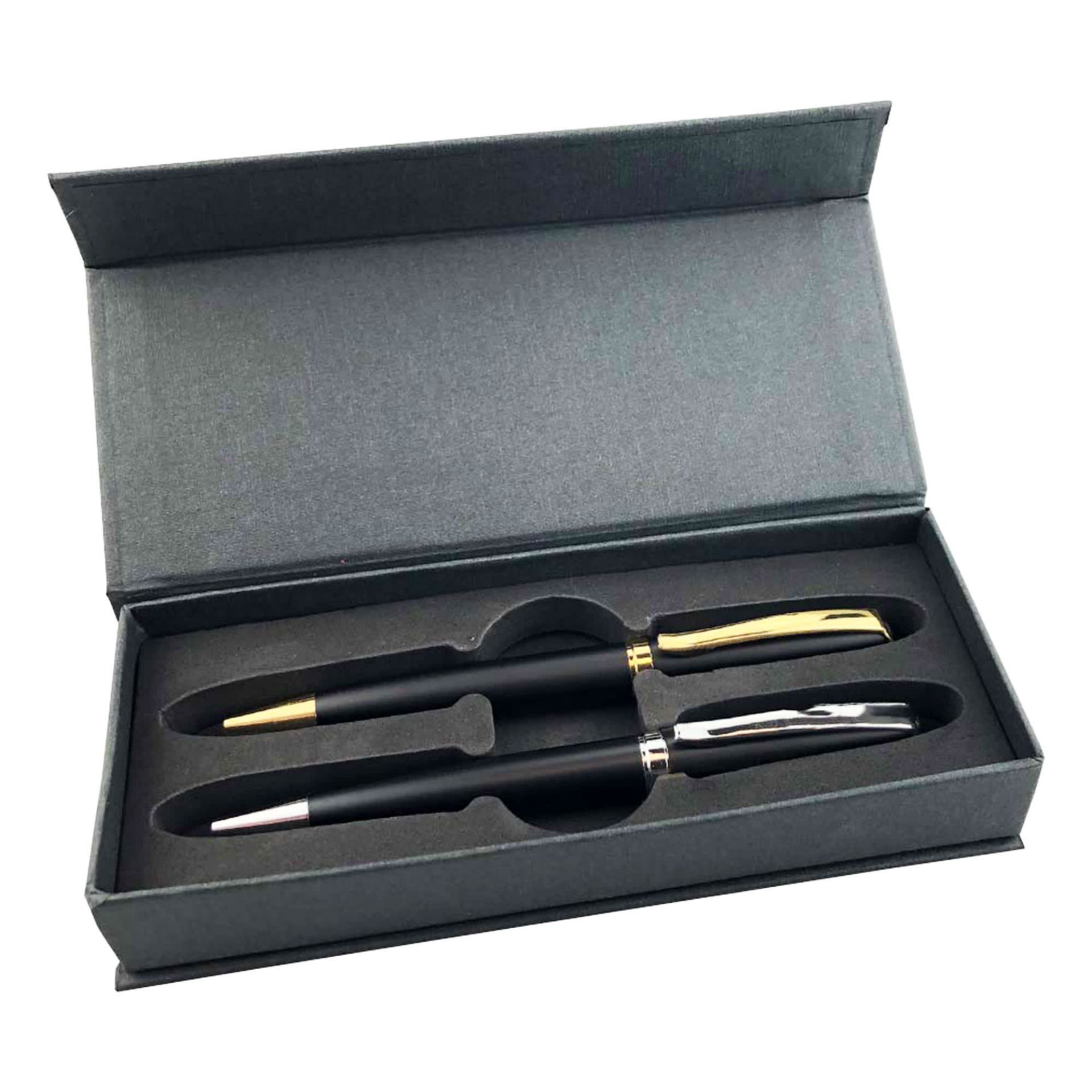 The Prime Premium Pen Gift Set features a classic design, combining heavy brass construction with a sleek matte black barrel and striking mirror-finish accents in both gold and silver. This timeless duo exemplifies sophistication and style. Presented in a hard black cardboard gift box with a custom foam insert, this set offers the perfect balance of elegance and functionality for high-end corporate gifting.