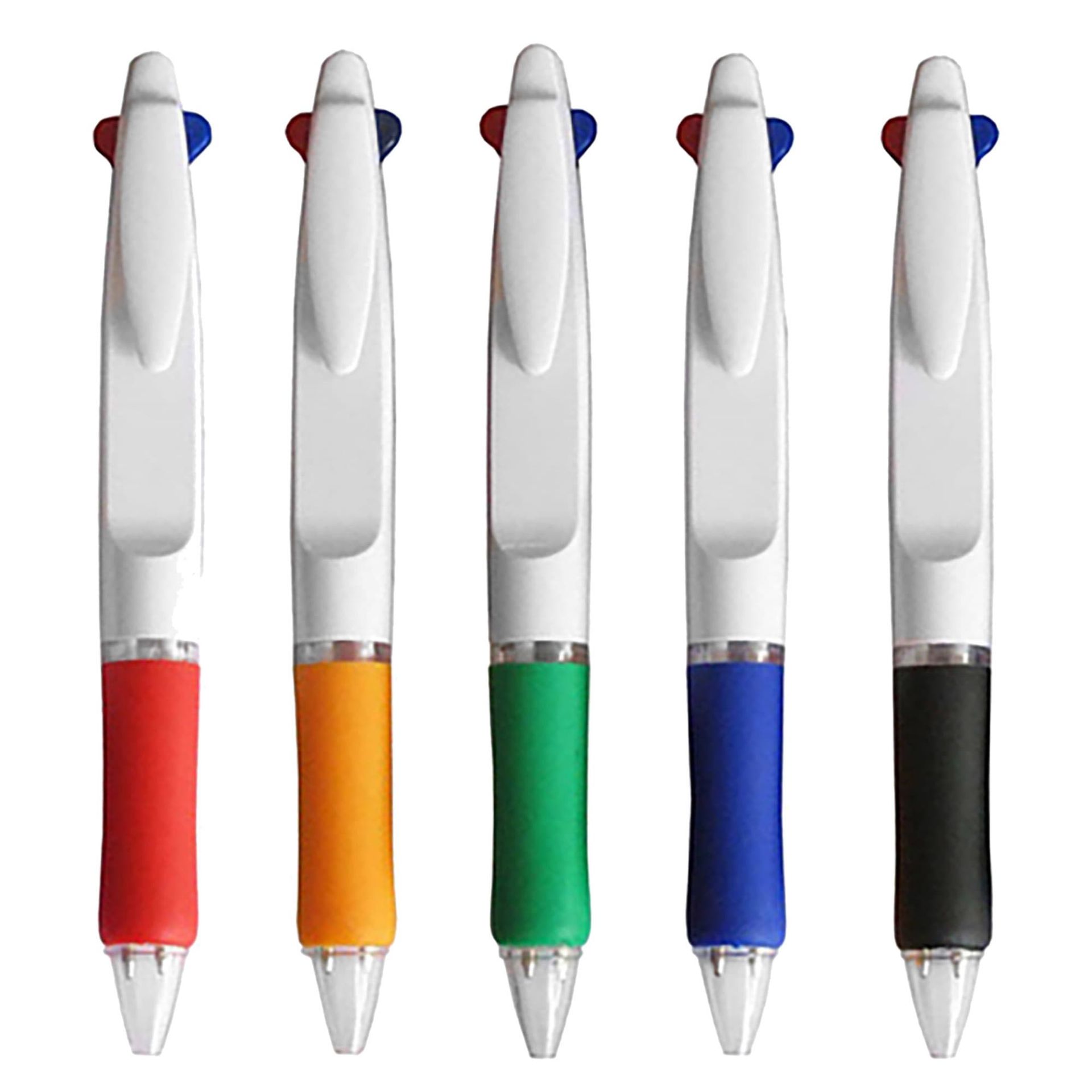 Click action 2 colour refill plastic pen white opaque body with clip and coloured rubber grip high quality German manufactured red and blue ink refill 1800 meters writing distance tungsten carbide ball provides you with quality writing.