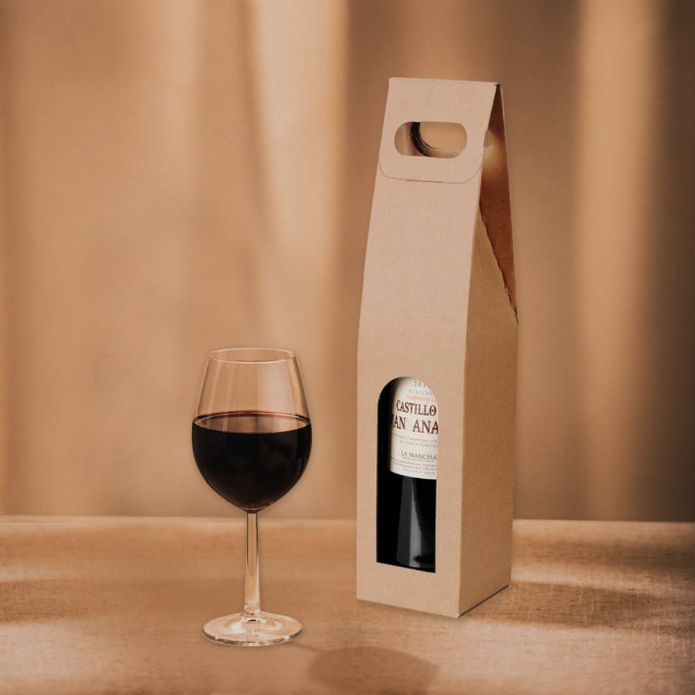 Get your branding seen, on the go, with our Single Bottle Portable Wine Box. Made of 300 gsm corrugated paper and 120 gsm white cardboard paper for durability. With screen print to highlight your design. The compact box design can be assembled from a flatpack into a wine box in just seconds. A Window on the wine box, allows you to clearly see the wine inside. Complete with top handle for easy carrying, making it the perfect choice for your next wine box.