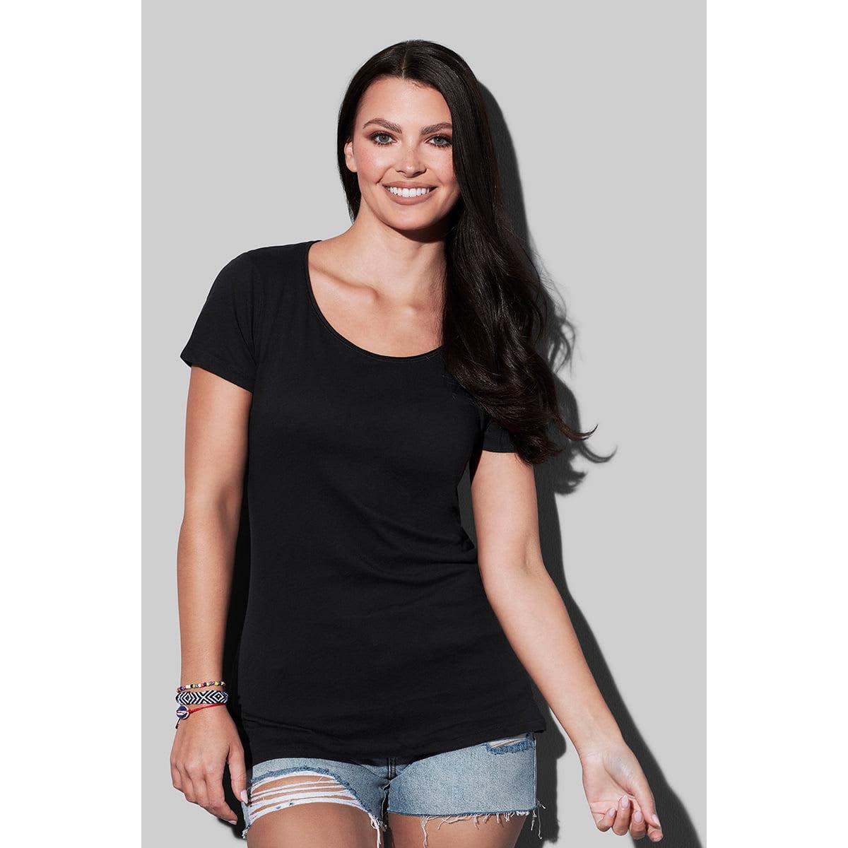 Soft combed cotton T-shirt for women with a very light feel and a fashionable rolled collar. The fine structure gives these T-shirts a premium look and high elasticity. Specifications * Fabric: 100% ring-spun combed cotton; single jersey * Weight: 105 g/m² * Fit: Normal Fit * Sizes: S-XL * Care Instructions: washable at 40°C * Other Features: rolled self-fabric collar, wide neck drop, neck tape, side seams, small size label in the collar, care label in the side seam