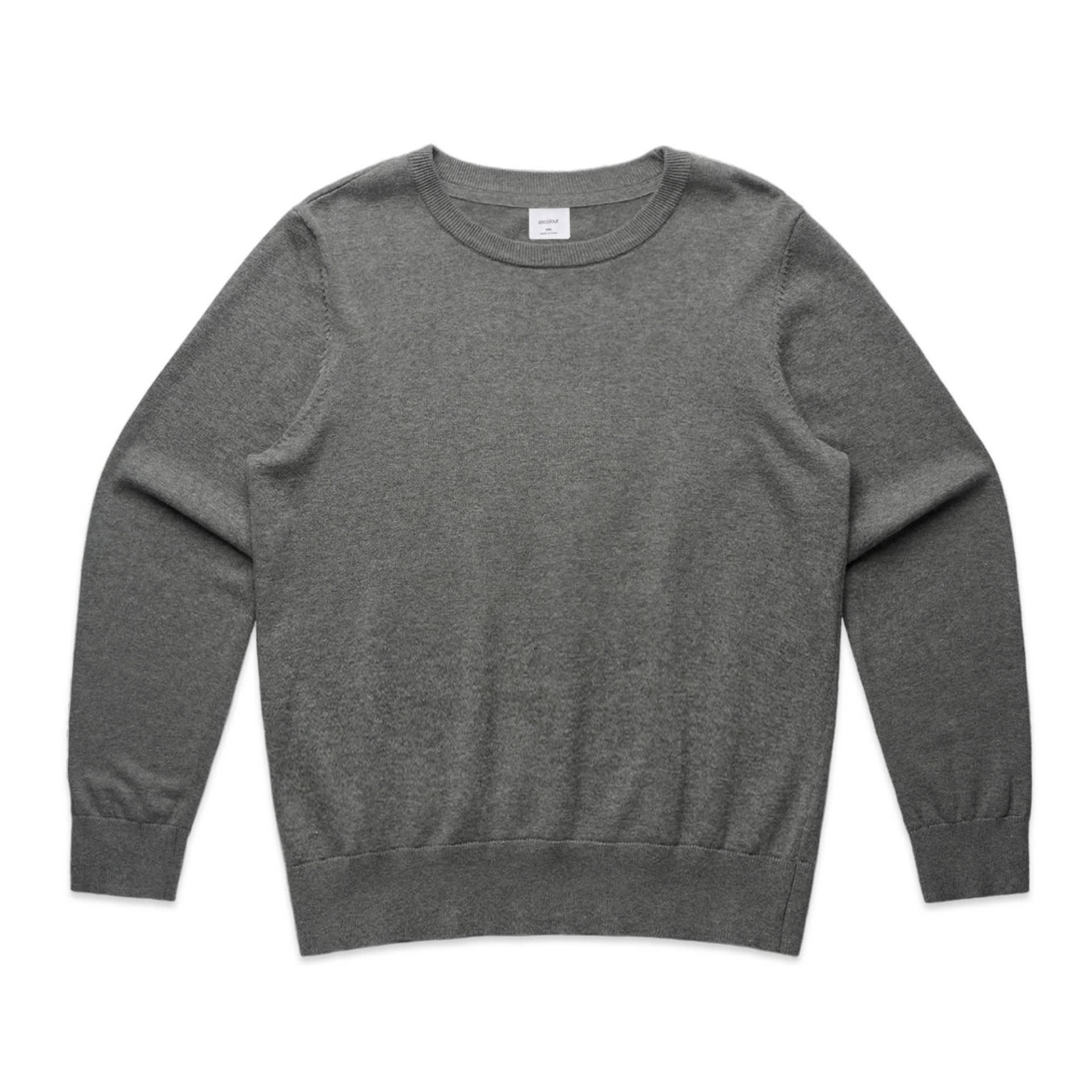 Crew neck, regular set in sleeve, knit ribbing at hem cuff and neck